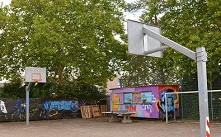 Am 16. Februar 1968 wurde die Turn- und Schwimmhalle bei der Friedrichschule ihrer Bestimmung übergeben. Als äußeren Schmuck erhielt die Halle eine Metallplastik des Schwetzinger Künstlers Heinz Friedrich, die die Sportarten symbolisch zeigt, die in der Halle ausgeübt werden können. An der Stirnseite der Schwimmhalle finden wir eine Mosaikarbeit der Staatl. Majolika Karlsruhe.