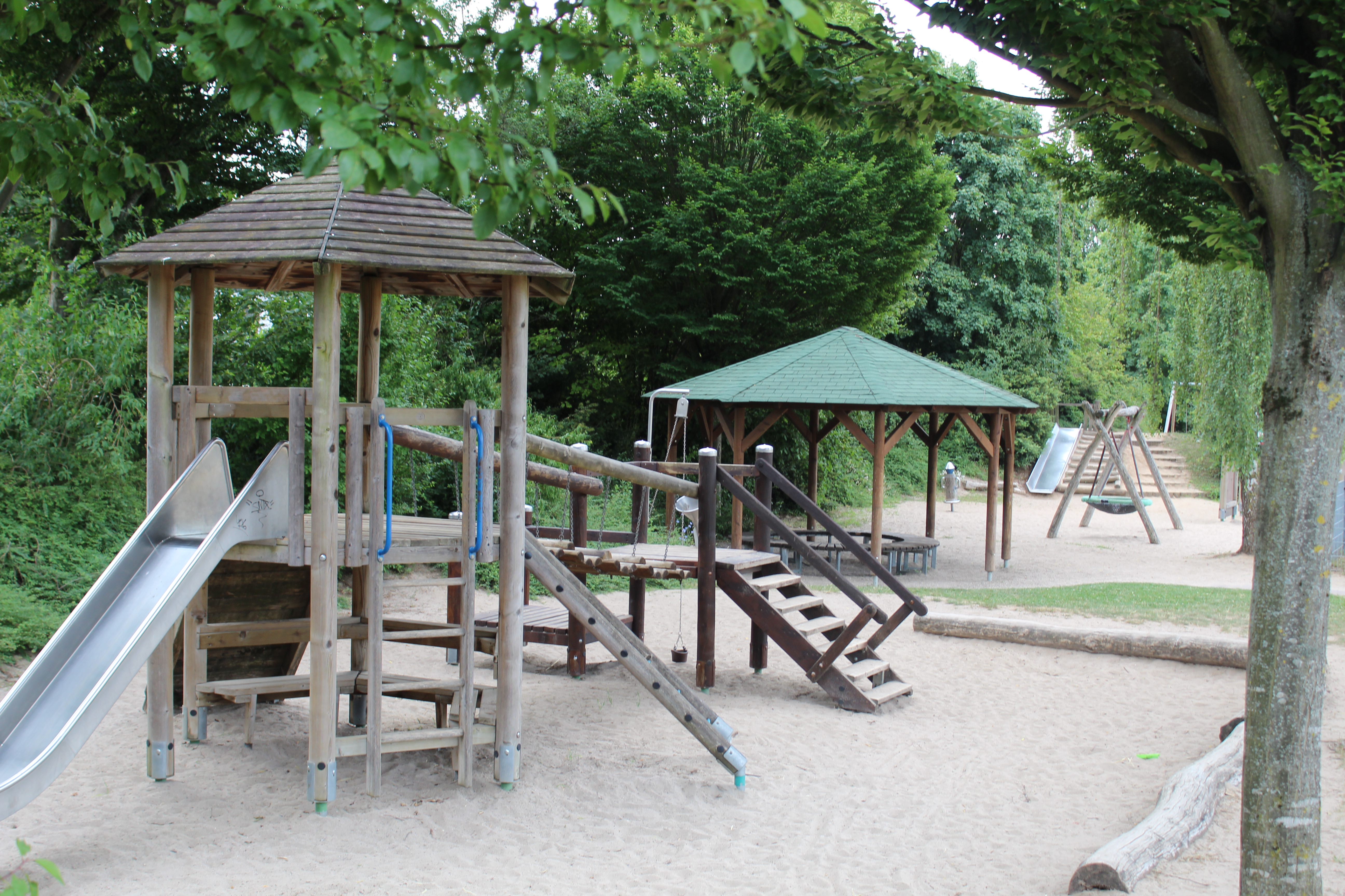 Abenteuerspielplatz Bild: Stadt Eppelheim Öffnungszeiten: Ganzjährig täglich von 08:00 - 21:00 Uhr Spielhaus mit Rutsche SchaukelnSeilbahn KlettergerüstNestschaukel